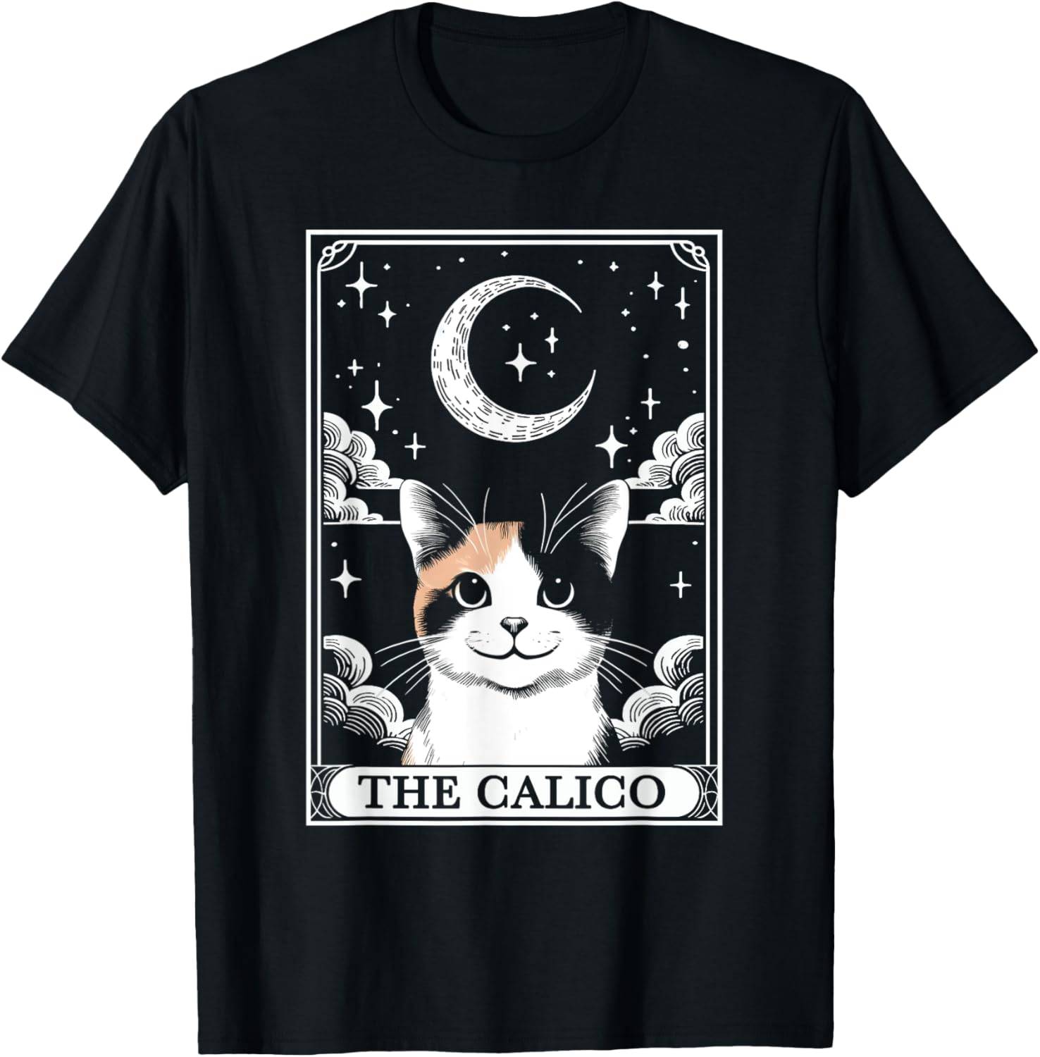 Tarot Card Vintage Crescent Moon Calico Cat Mom Cat Lovers T-Shirt