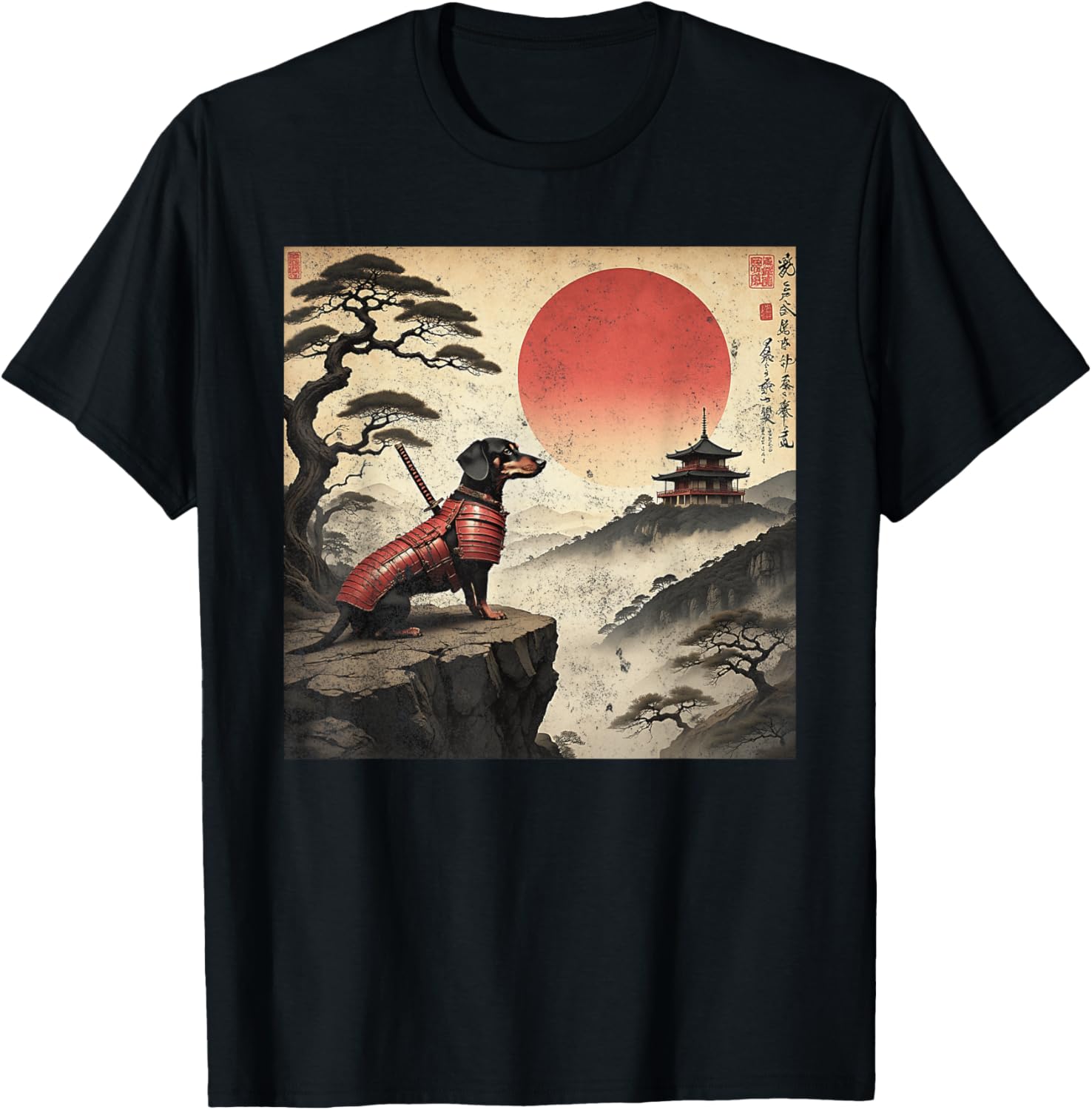 Vintage Dachshund Samurai Wiener Dog Japanese Ukiyo-e Art T-Shirt