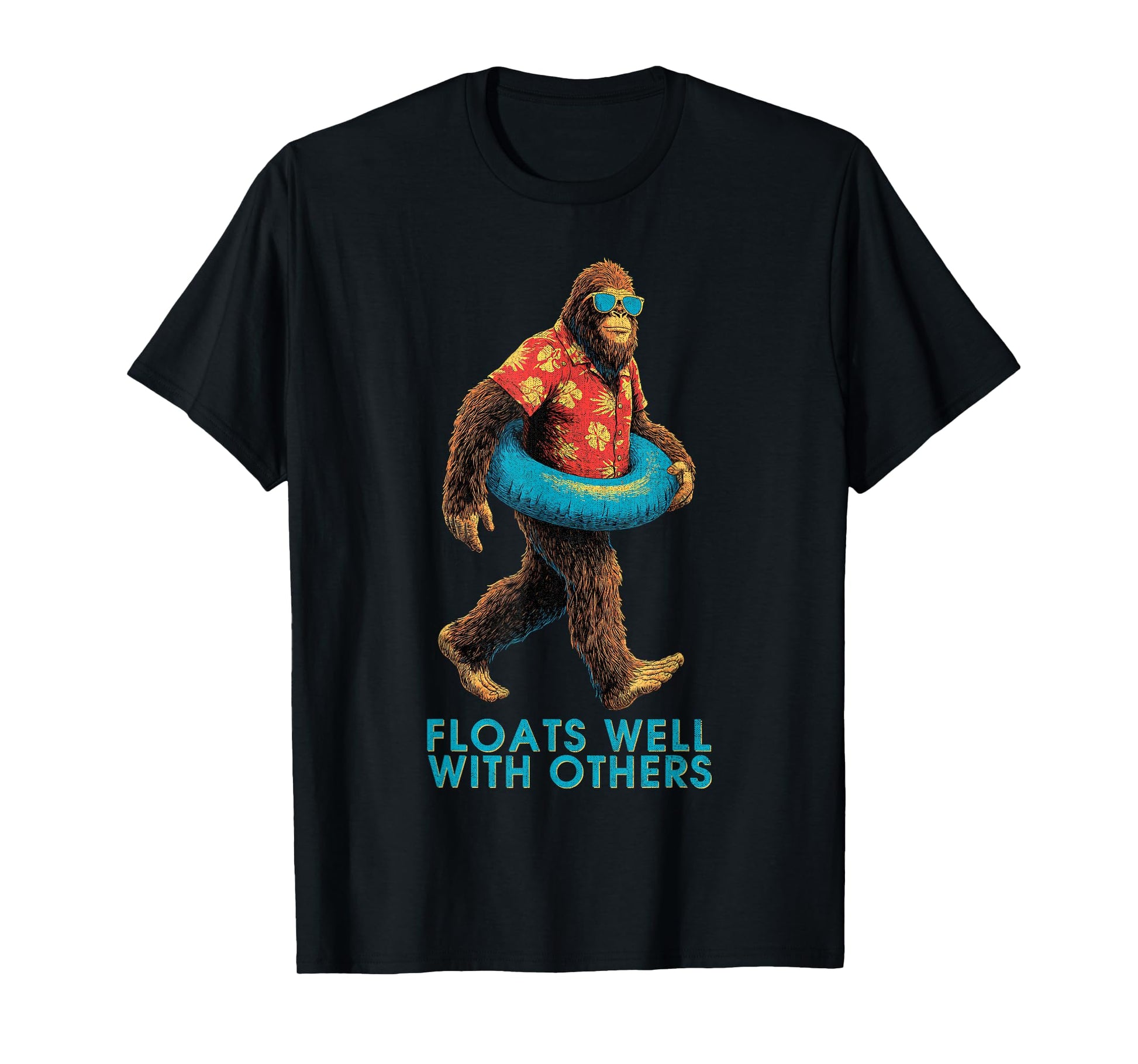 Vintage Floats Well With Others Funny Bigfoot Summer Pool T-Shirt