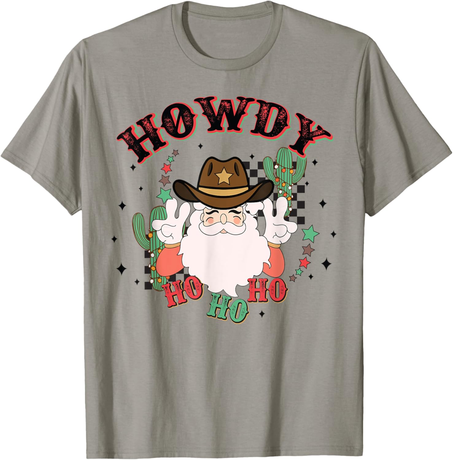 Vintage Howdy Ho Ho Ho Santa Cowboy Christmas Western T-Shirt