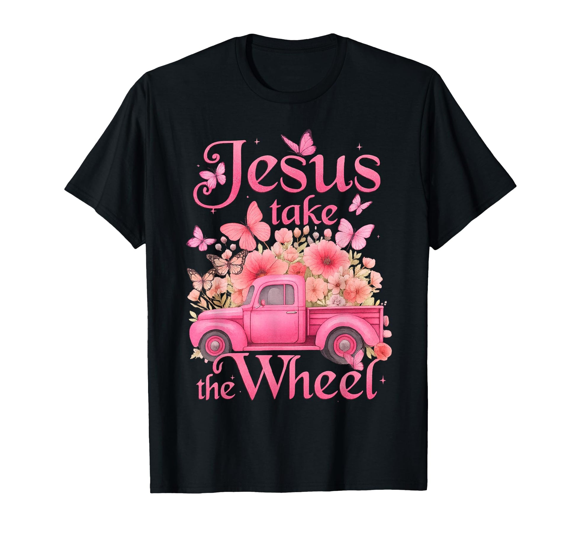 Vintage Jesus Take The Wheel Pink Floral Truck Butterfly T-Shirt