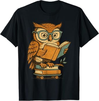 Vintage Librarian Bookworm Cute Skateboarder Funny Owl T-Shirt