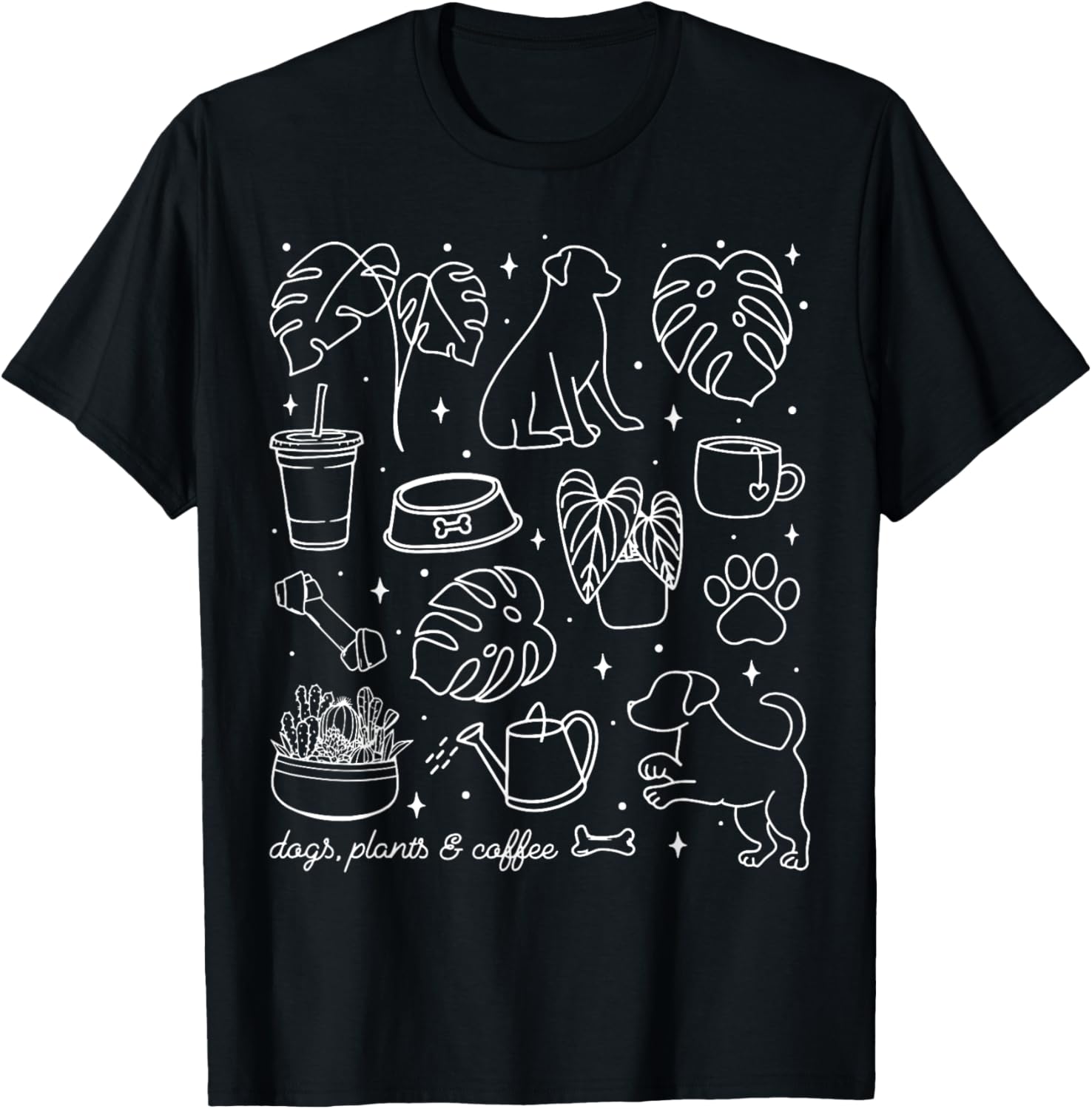 Vintage Dogs Plants & Coffee Houseplant Plant Lover Dog Mom T-Shirt