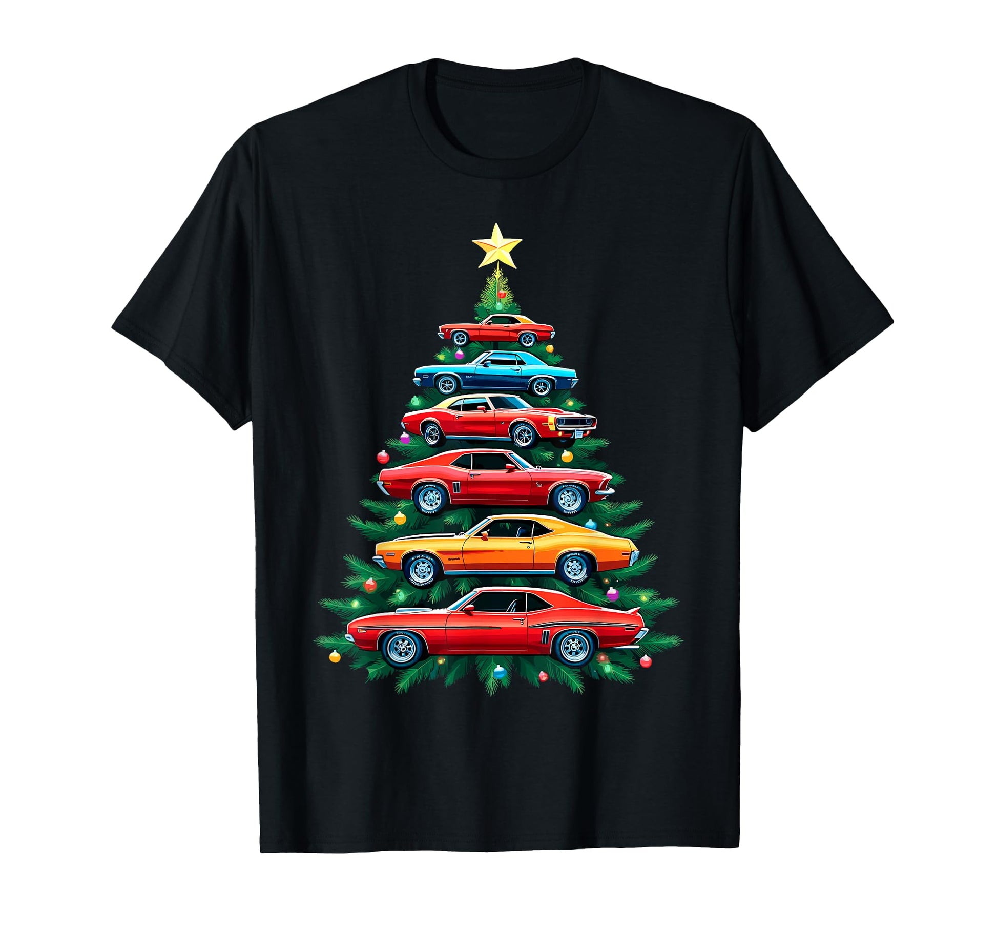 Vintage Retro Car Christmas Tree Xmas Holidays New Year T-Shirt