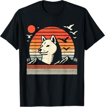 Vintage Shiba Inu Sunset Mountains Birds T-Shirt
