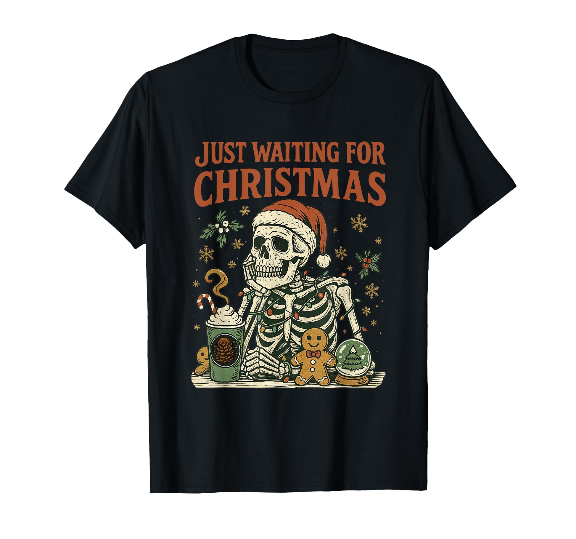 Vintage Xmas Holiday Just Waiting for Christmas Skeleton T-Shirt