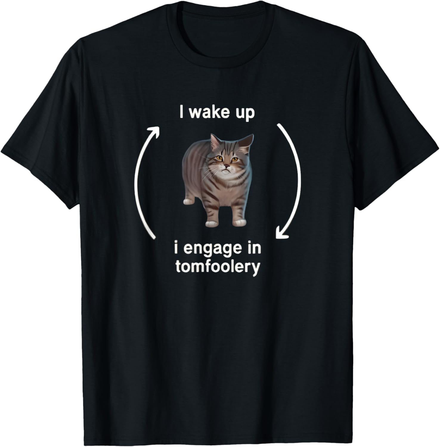 I Wake Up I Engage In Tomfoolery Funny Cat Meme T-Shirt
