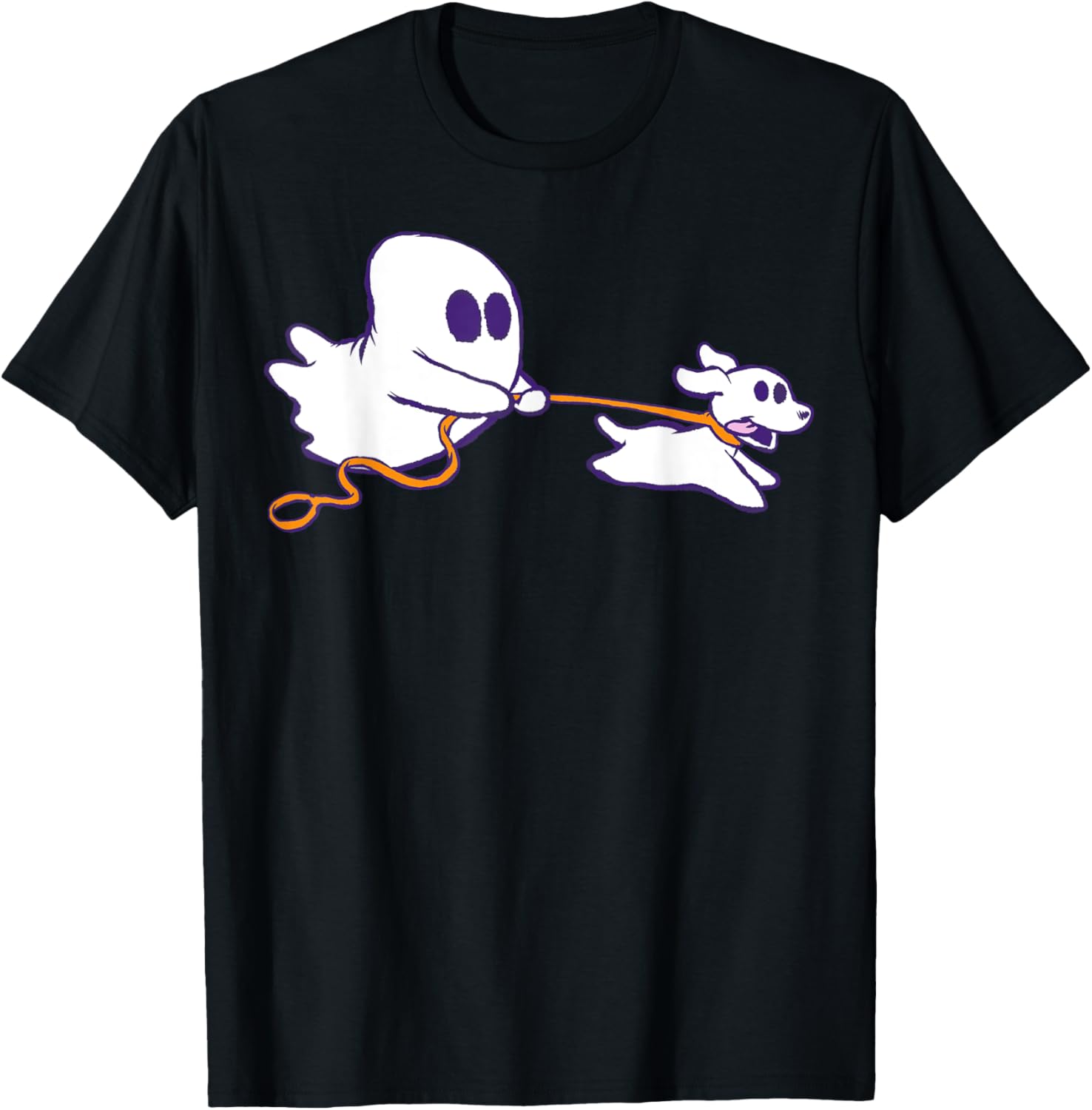 Cute Ghost Dog Walker Graphic Halloween Costume T-Shirt