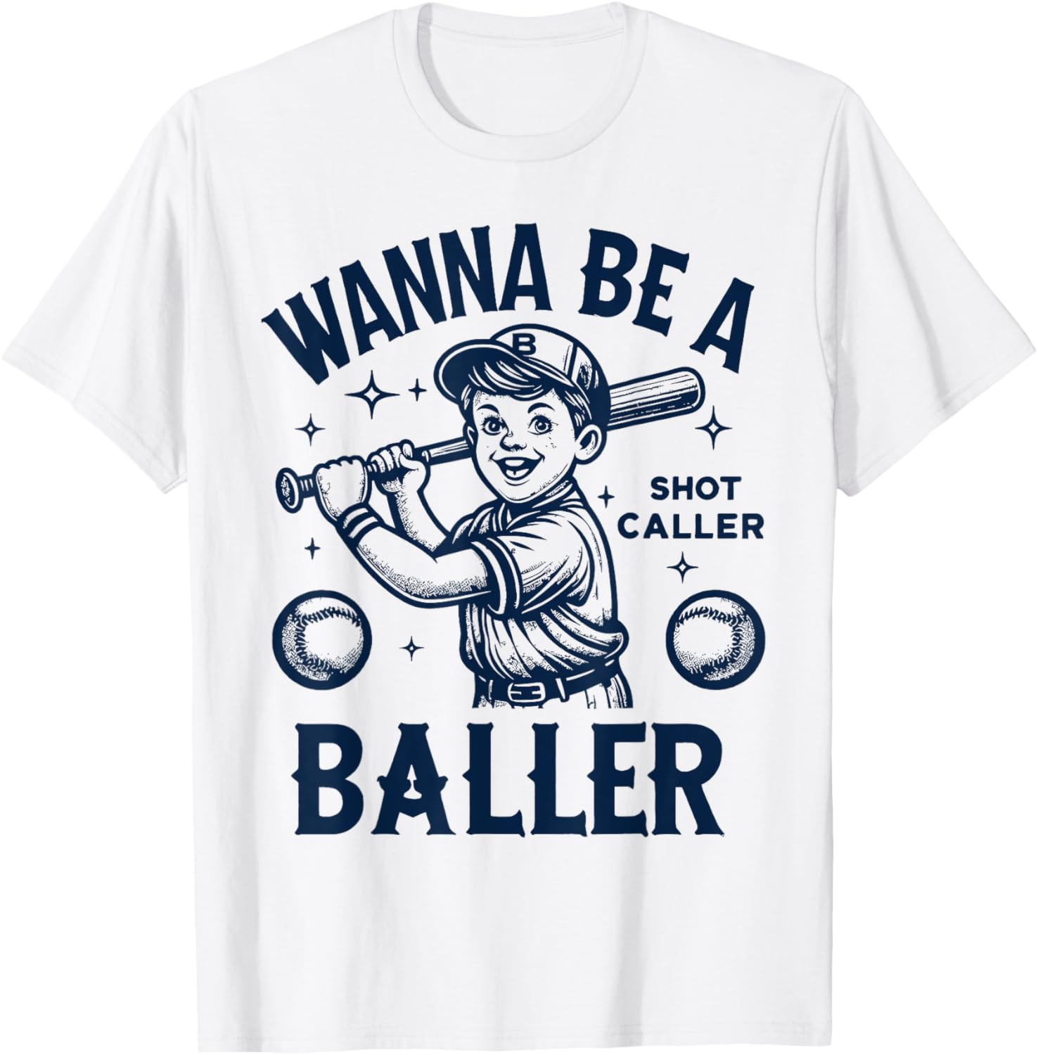 Wanna Be A Baller Shot Caller Retro Game Day Baseball Boy T-Shirt