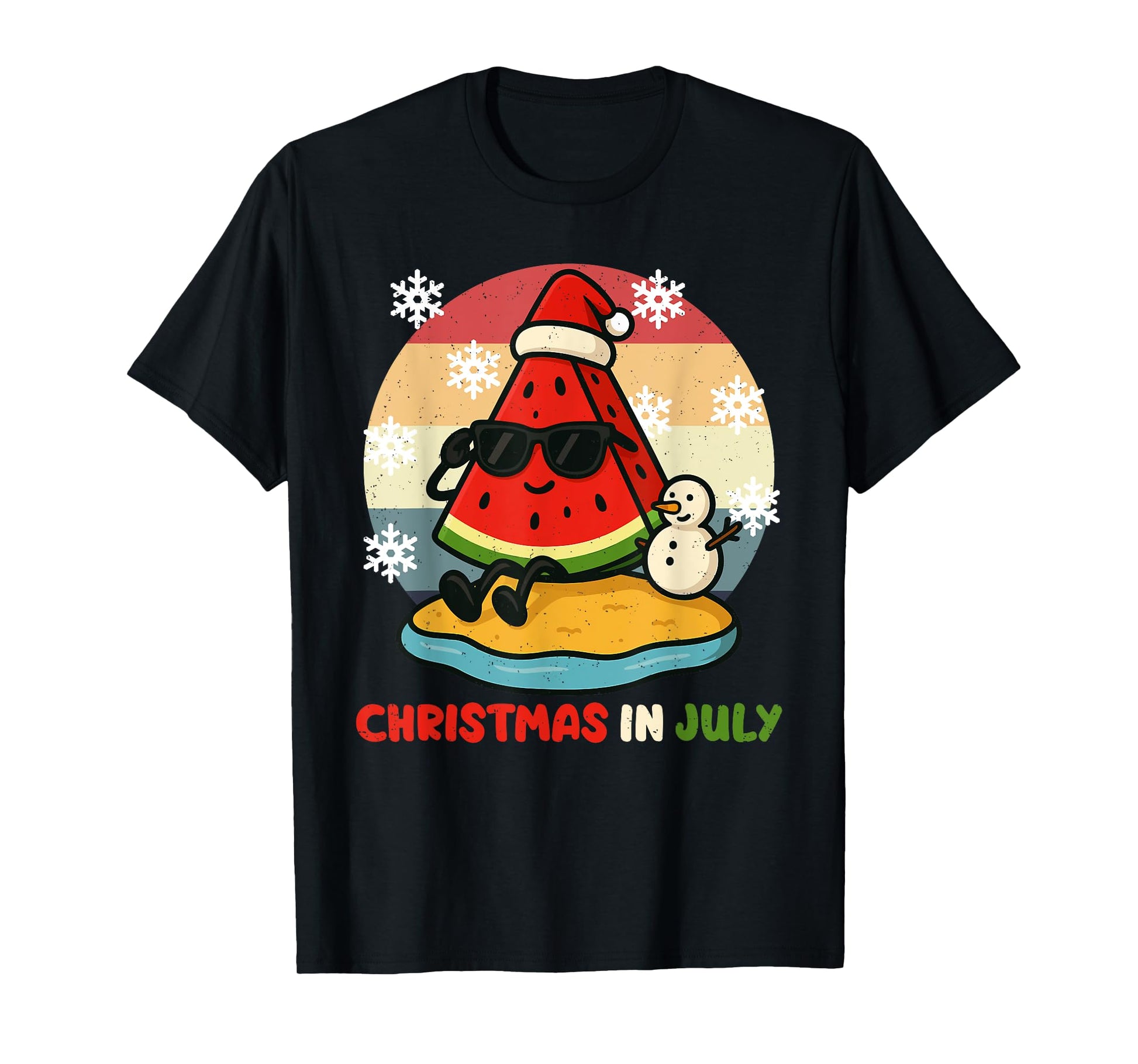 Watermelon Santa Hat Snowman Christmas In July Summer X-mas T-Shirt