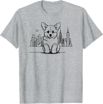 Welsh Corgi dog in New York City gifts, NYC skyline art T-Shirt