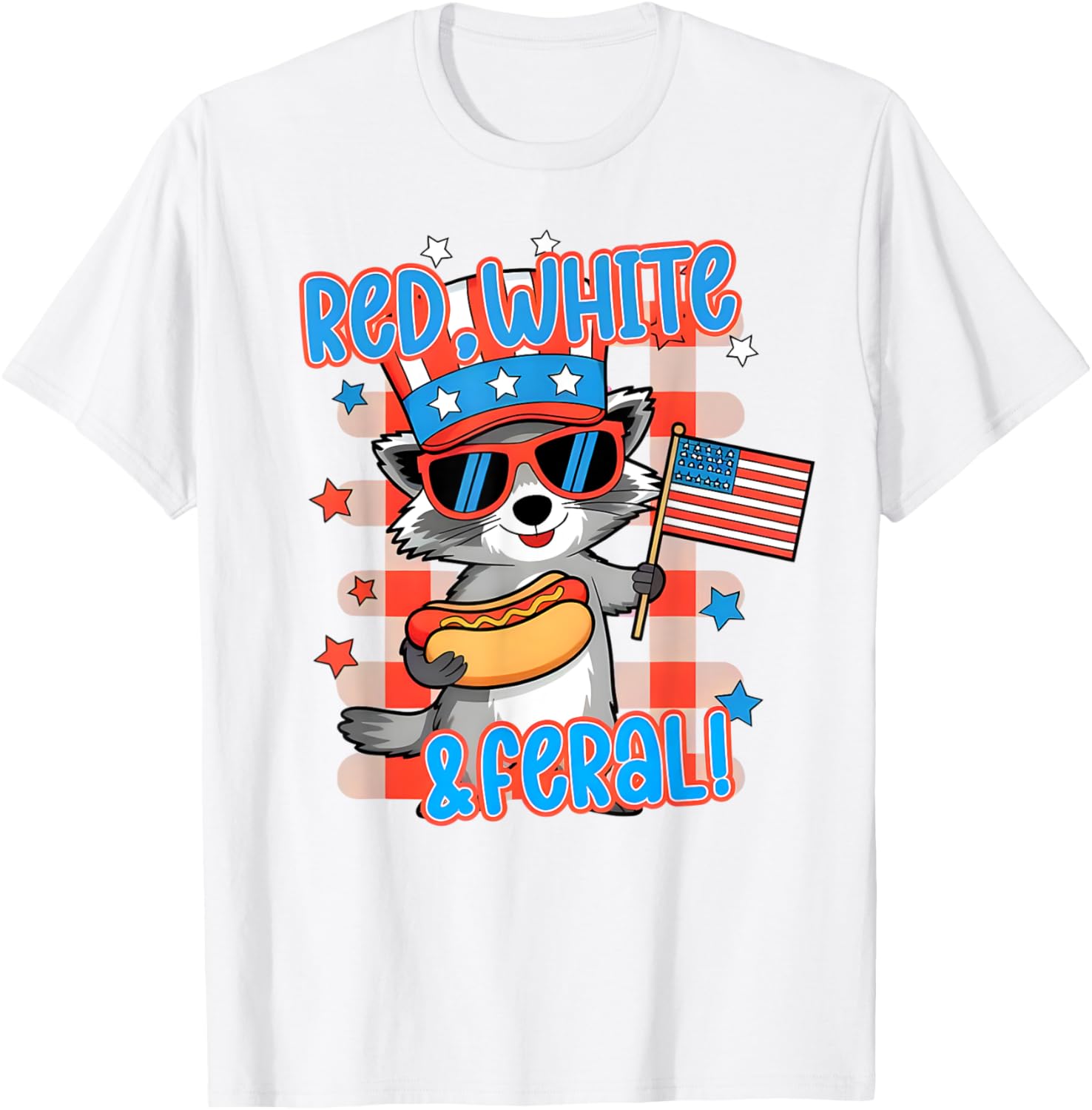 Red White And Feral Funny Raccoon Hotdog USA Flag 4th July T-Shirt