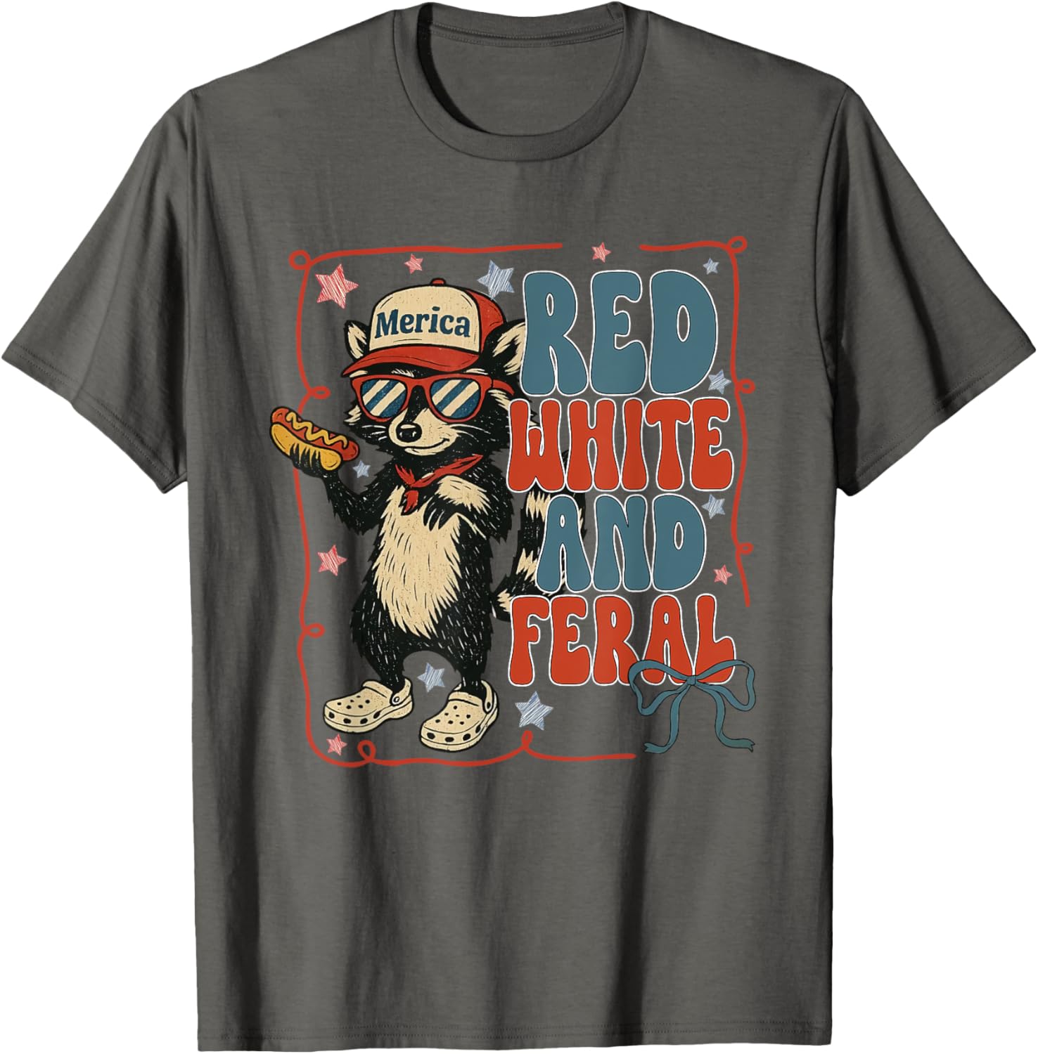 Red White And Feral 4th Of July Funny Raccoon Hot Dog T-Shirt