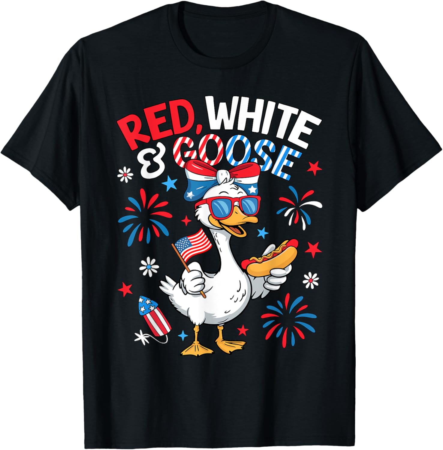 Red White Goose 4th Of July Hotdog USA Flag Girls Women T-Shirt