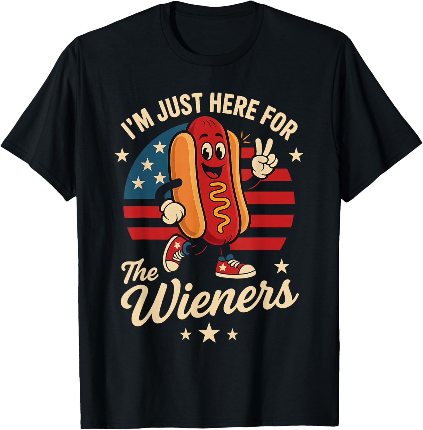 I'm Just Here for The Wiener 4th of July Hotdog Usa Flag T-Shirt