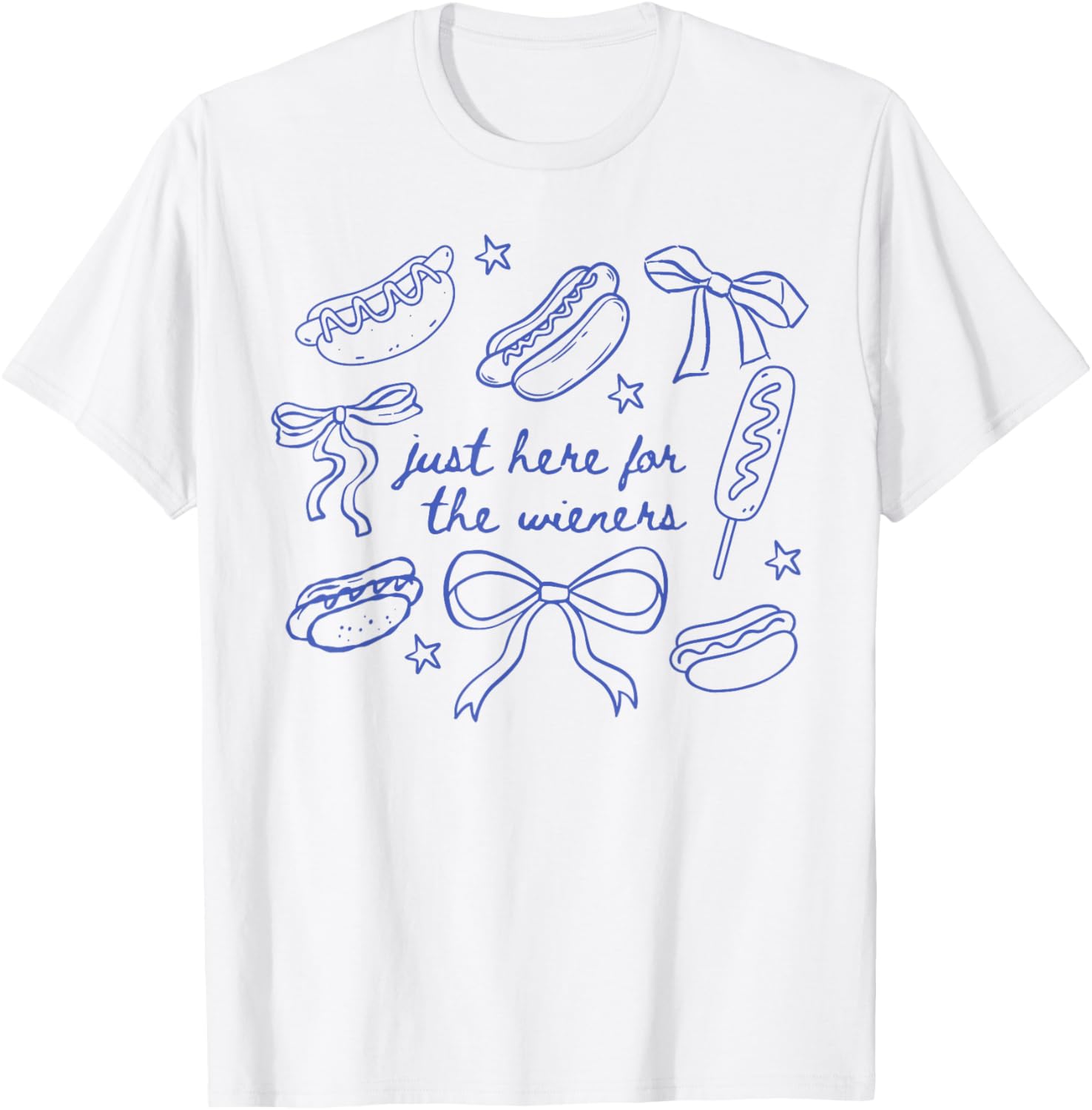 Just Here For The Wieners Funny Hot Dog 4th Of July Coquette T-Shirt