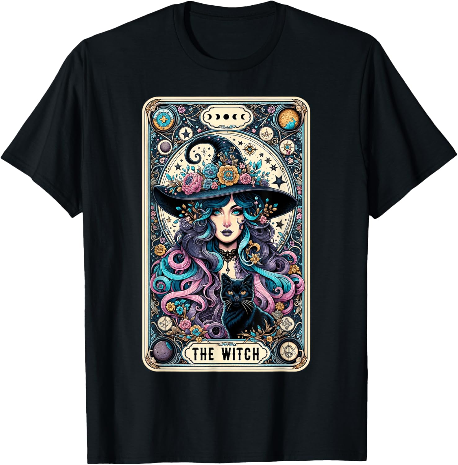 The Witch Cat Tarot Card Witch Vintage Gothic Halloween T-Shirt