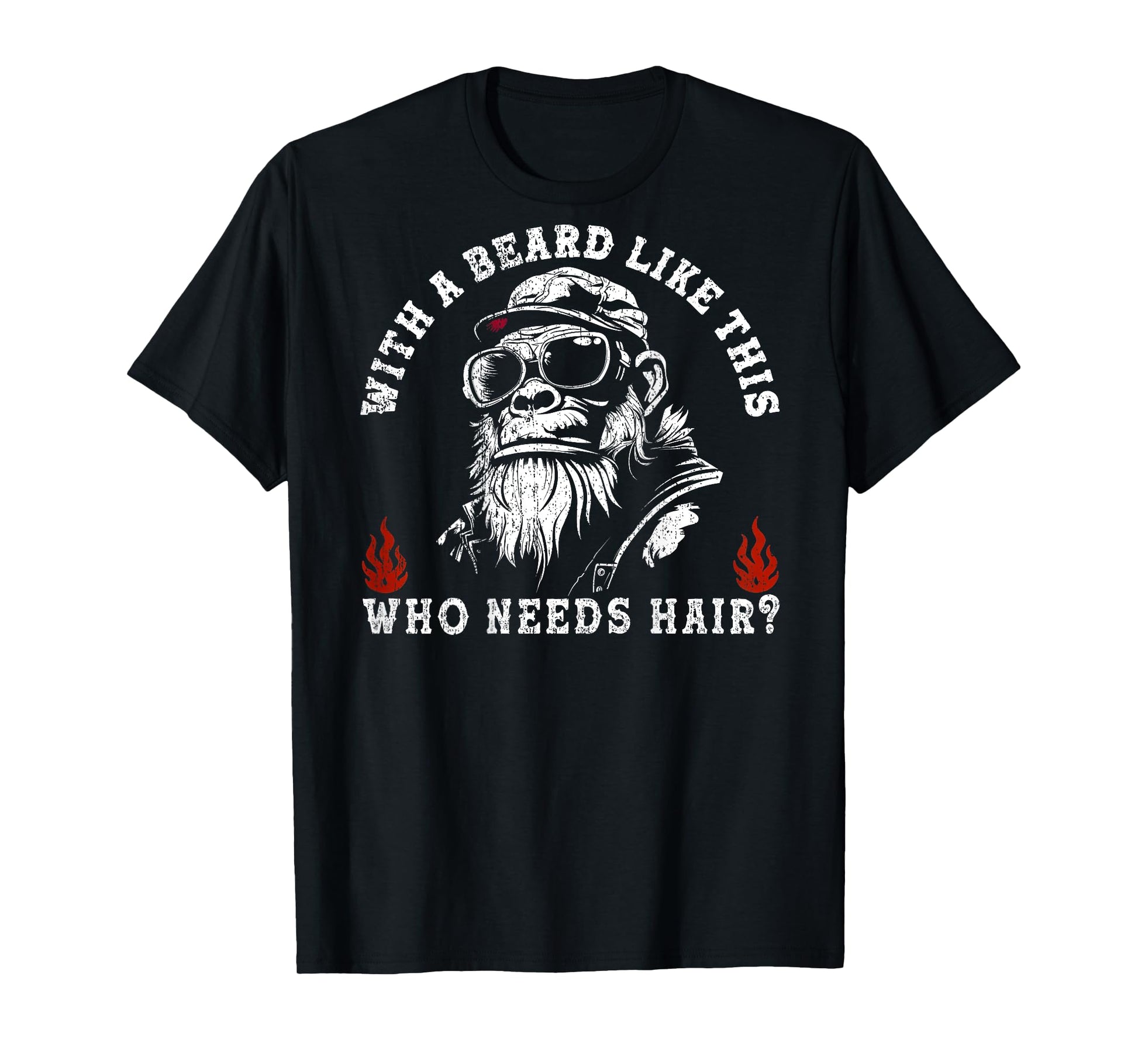 with A Beard Like This Who Needs Hair Funny Monkey (On Back) T-Shirt