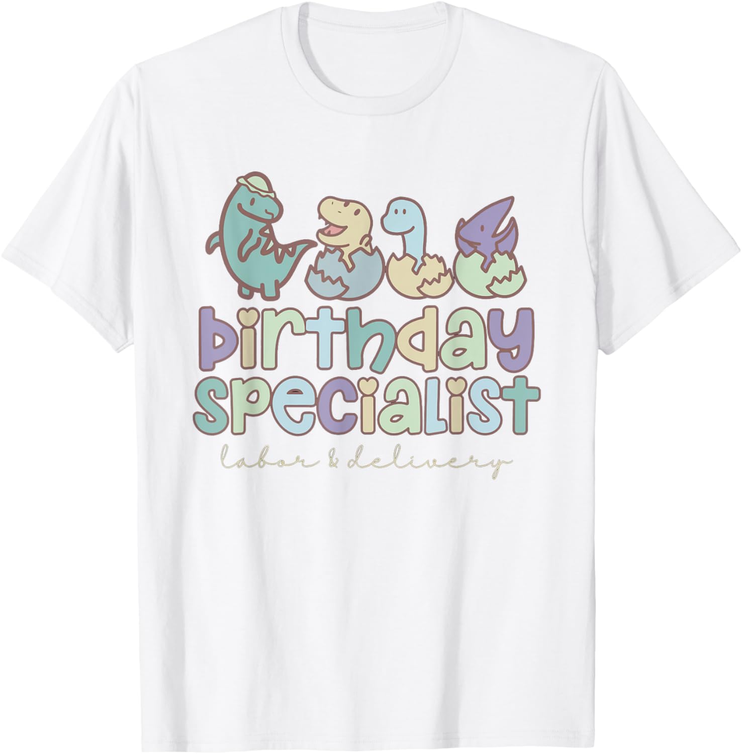 Women Birthday Specialist Dinosaurs Labor and Delivery Nurse T-Shirt