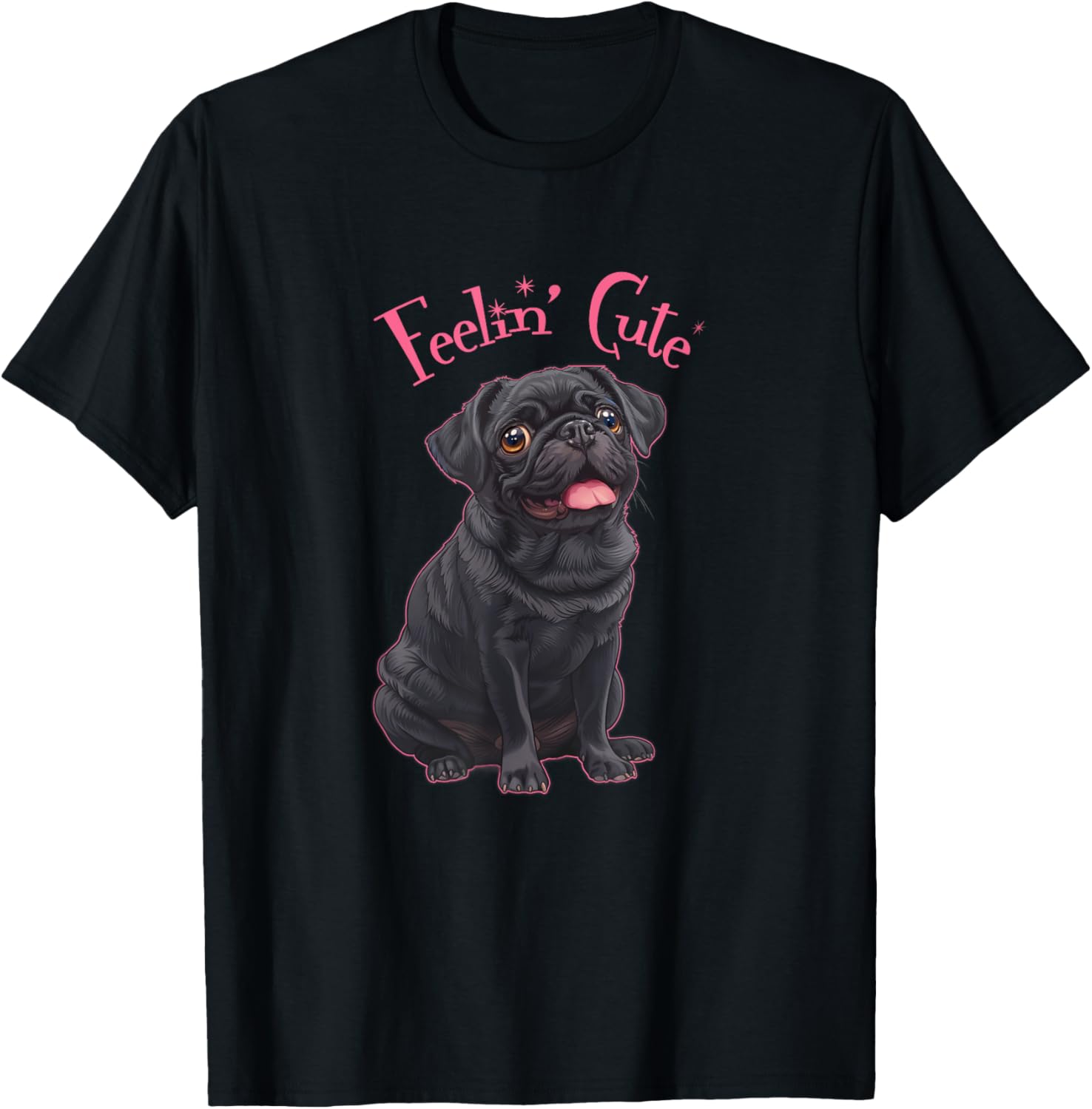 Funny Womens Girls Feelin' Cute Black Pug Lover T-Shirt