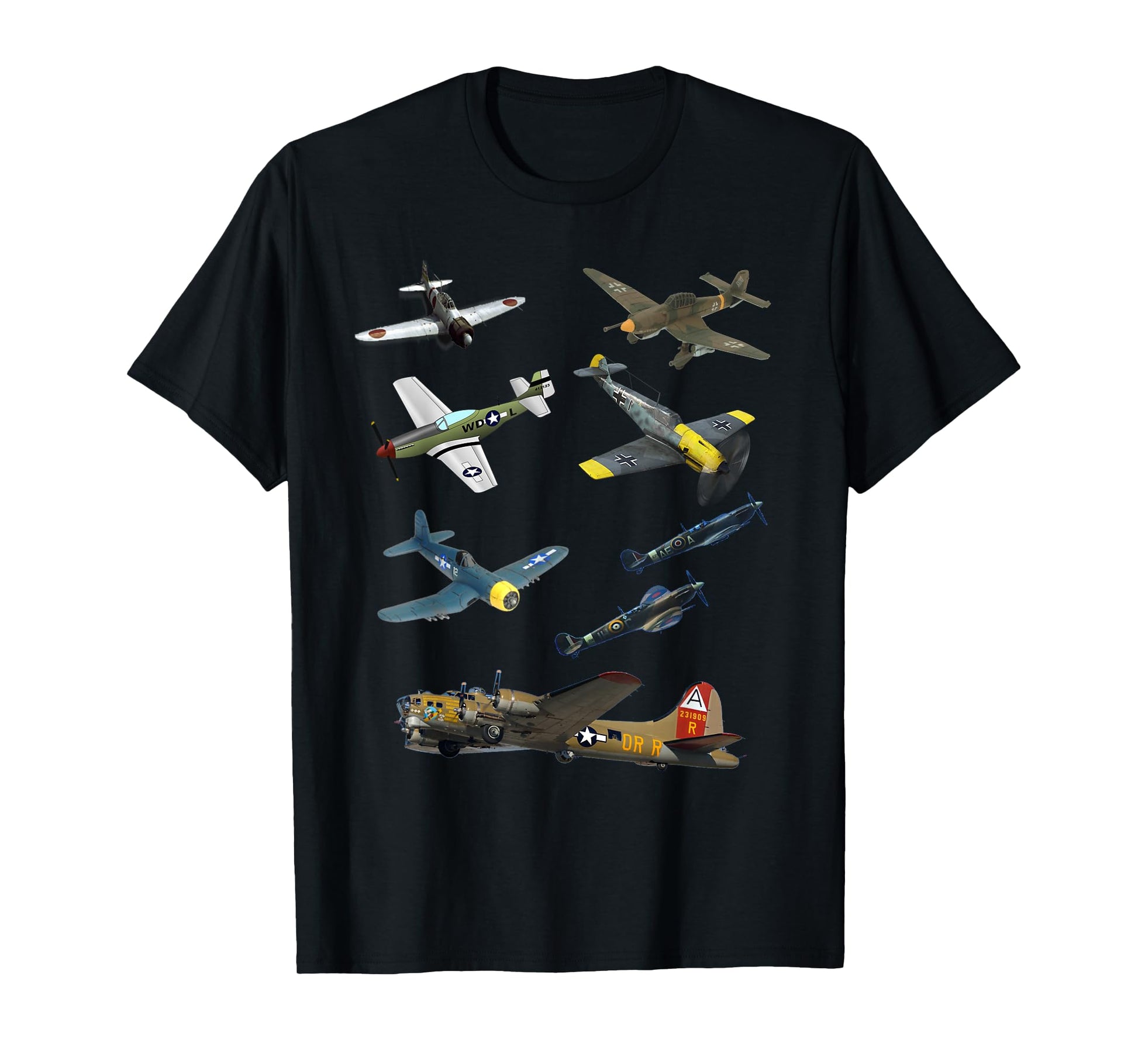 WW2 Planes Warbirds P51 Mustang Spitfire Messerschmitt T-Shirt