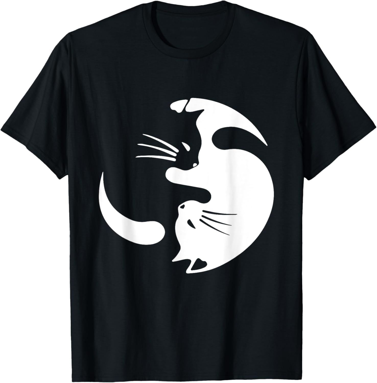 Yin Yang Cat Symbol Cute Black and White Cat Kitty Halloween T-Shirt