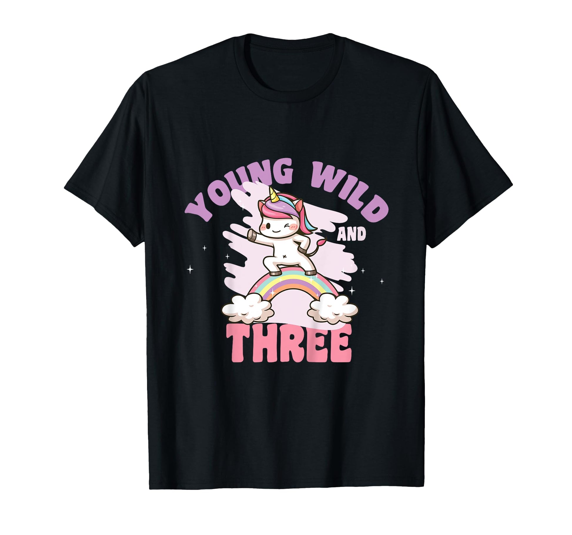 Young Wild & Three - Funny 3rd Birthday Kids Unicorn Girls T-Shirt
