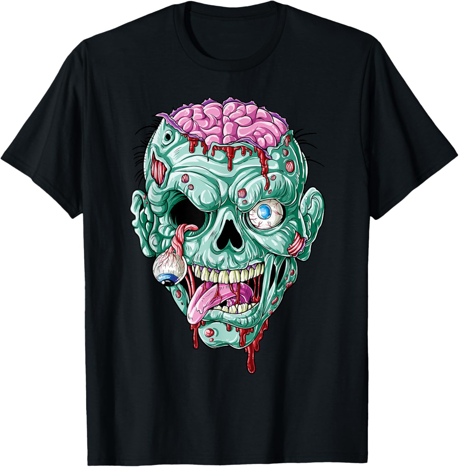 Zombie Face Brain Halloween Boys Men Women Girls Scary Funny T-Shirt